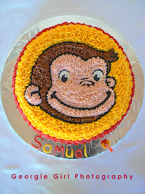 When my own little monkey turned one, it seemed perfect to have a Curious George Party. It was a great theme - balloons, bright colours, bubbles and of course lots of little monkeys running around. This cake was baked by Marleen, a lady who has baked many wonderful cakes for me over the years.